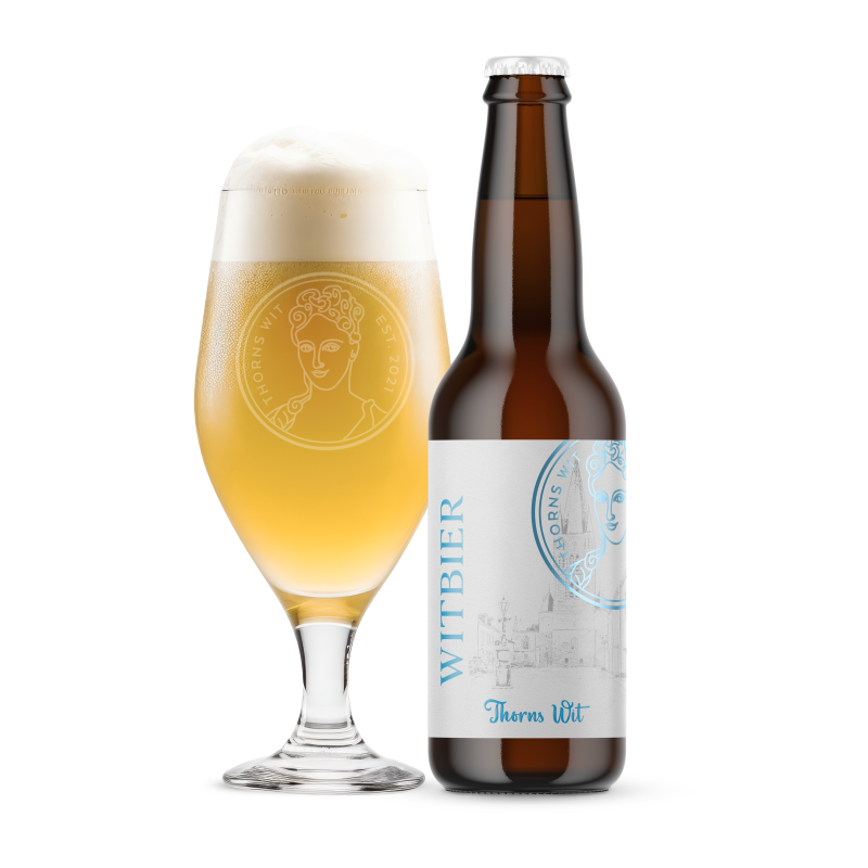 Thorns Wit - Origineel Wit is een een fruitig witbier, met iets meer body dan je van een witbiertje gewend bent. Thorns Wit is gebrouwen met spelttarwe, Amerikaanse hoppen, vlierbloesem, sinaasappelschil en koriander.